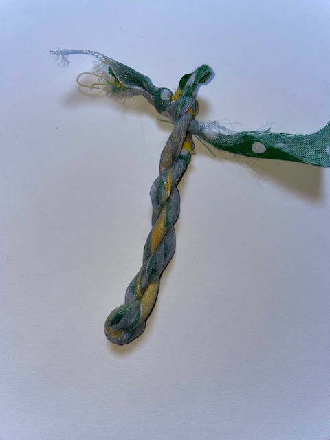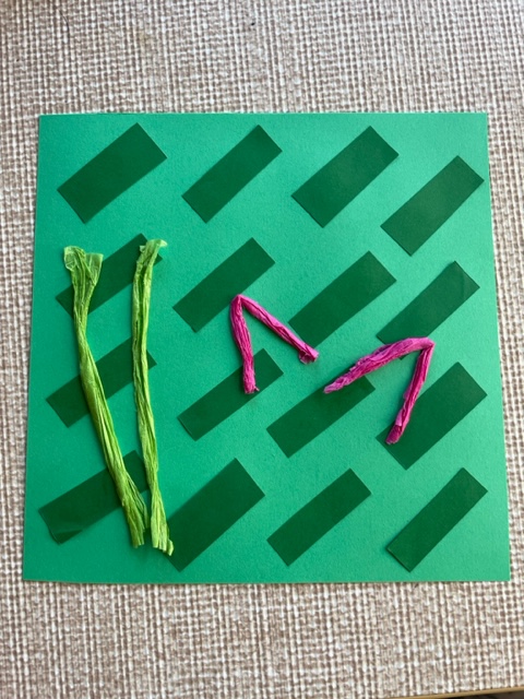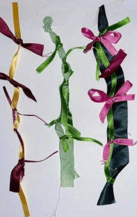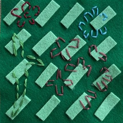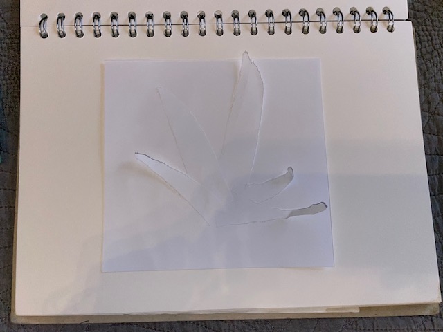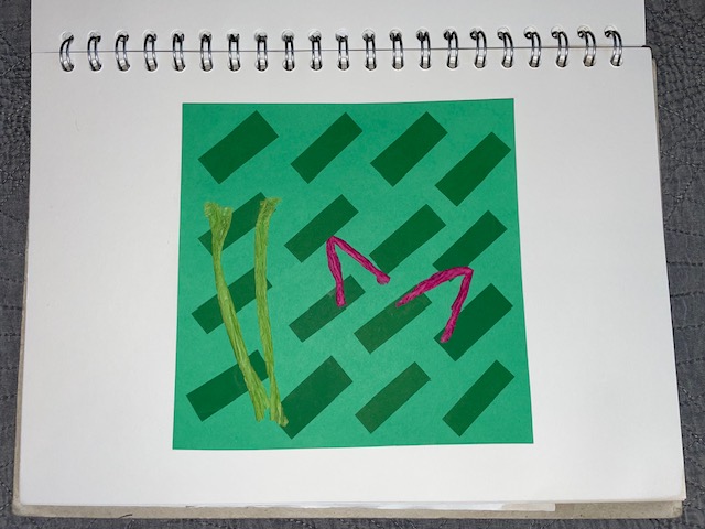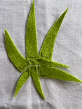 This textile has a variety of different fabrics involved in many shades of green. Following on from the textile sample in the previous project, I wanted the improved version to be louder in terms of size and colour. I cut many pointy strips of all different shades of green and then began placing them on the white fabric. Once they were in their designated position, I made a very small stitch, enough to keep them in place but still allow them to move freely. Layering the leaves on top of each other eventually created a three dimensional effect.