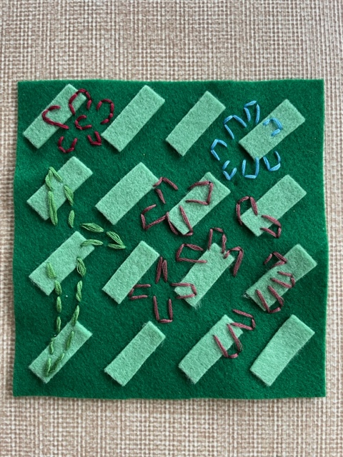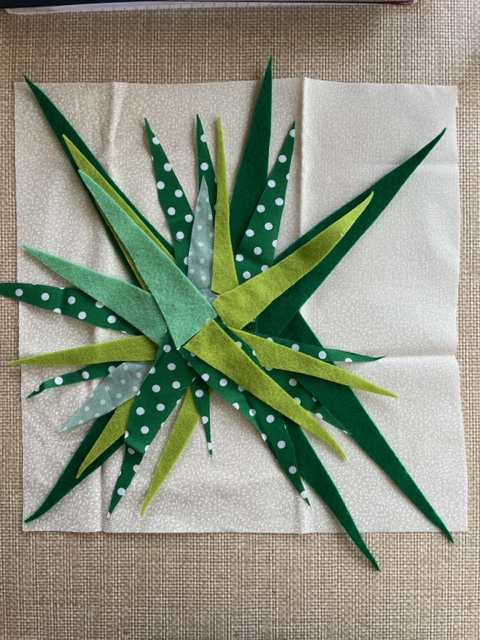 The spider plant piece was successful and came out better than I thought it would. I managed to include a few different shades of green and a variety of leaf shapes. It was even more rewarding when it started to raise the more layers I added because it made it pop out of the fabric more.