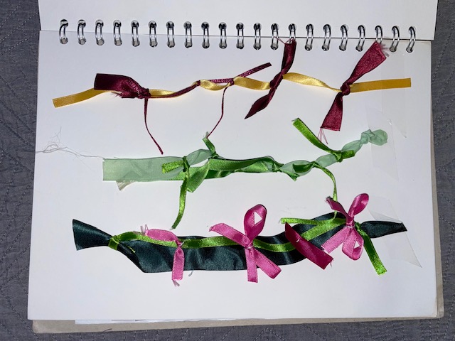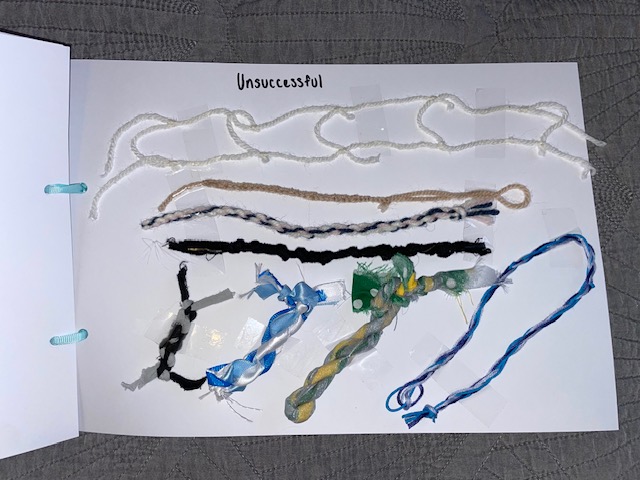 When all 6 samples were done, I had to present them in a clear manner. I had to consider whether they sit well next to each other and complement each other. I laid them all out and put them in a way that I felt either had matching materials used and therefore creates a continuous theme or they just complimented each other in some way.