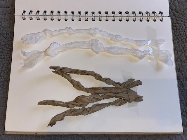 In this final assignment, I had to consider all the work created in Projects 1, 2 and 3 and aim to communicate the particular discoveries that I found exciting. I made some notes in my notebook about which were the most successful and decide to develop them further. This was an opportunity to improve upon my experimental samples by refining the techniques. I had to create 6 samples of 30cm by 30cm in size.